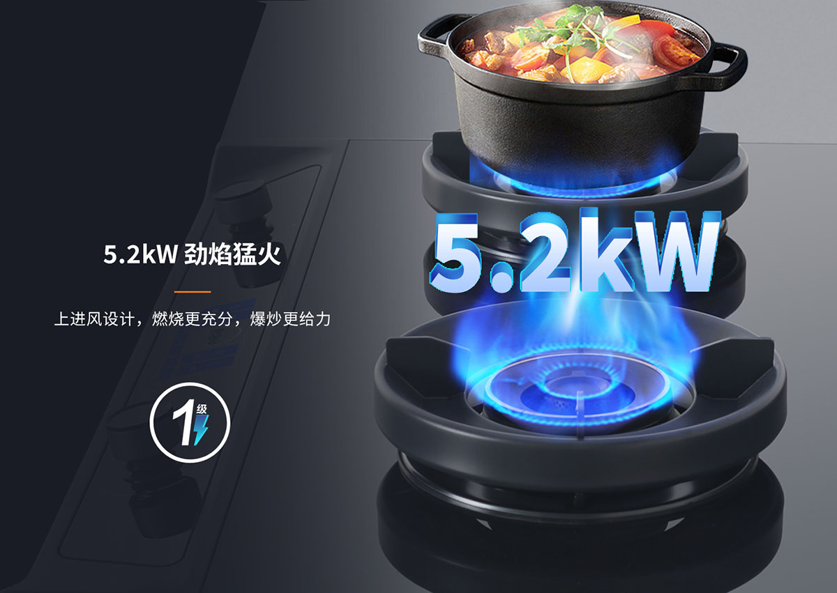 • 5.2Kw藍焰猛火,爆炒更給力