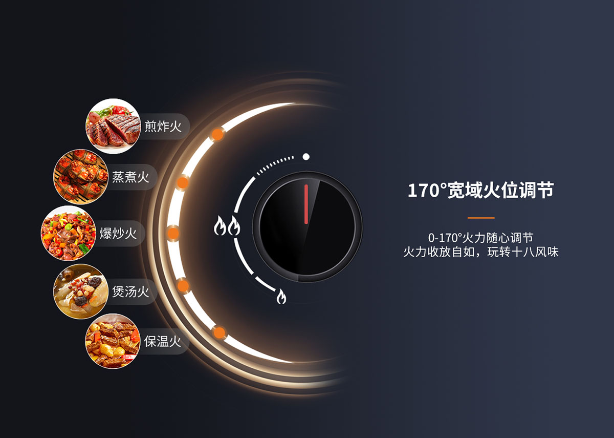 • 寬域火位調節,適宜各種烹飪