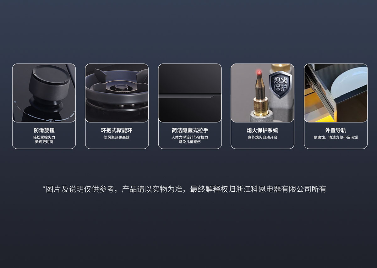 • 防滑旋鈕,輕松掌控火力,美觀更時尚