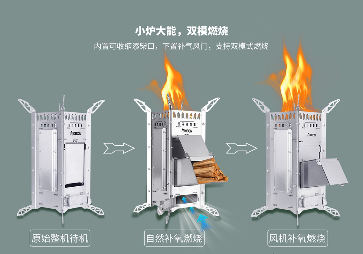 - 內(nèi)置可收縮添柴口,下置補氣風(fēng)門,支持雙模式燃燒