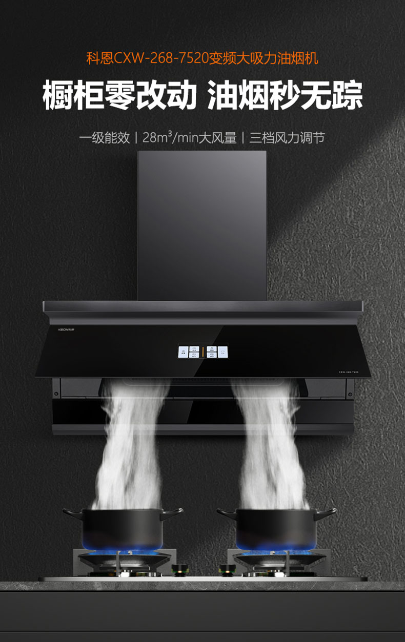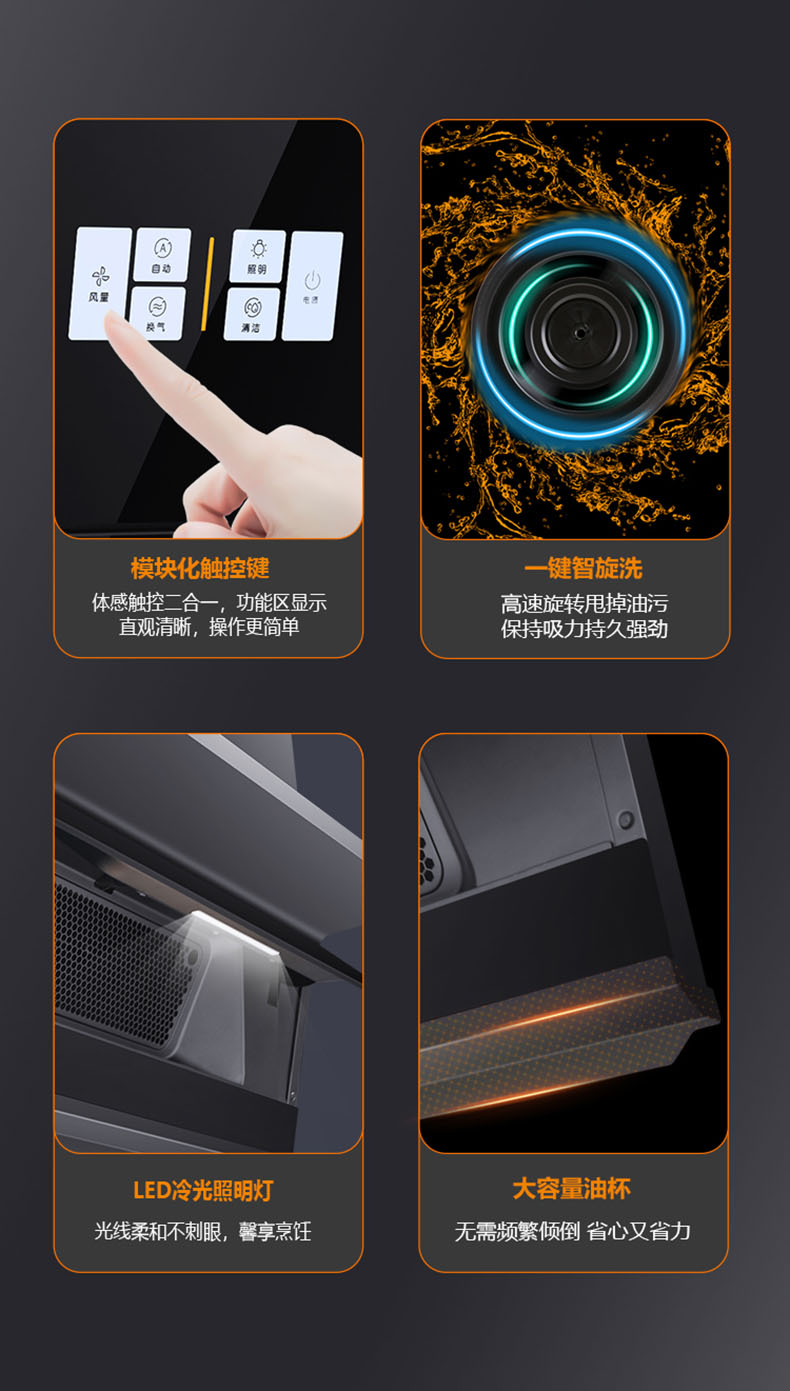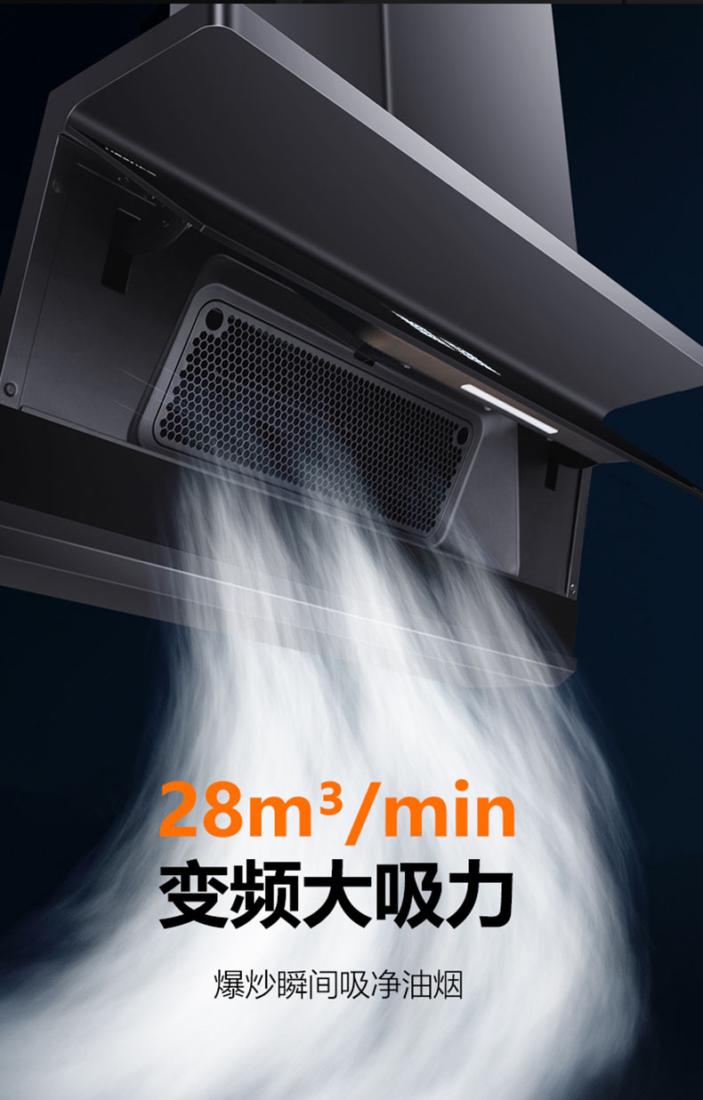 • ‌28m³/min颶風吸力‌,爆炒瞬間吸凈油煙