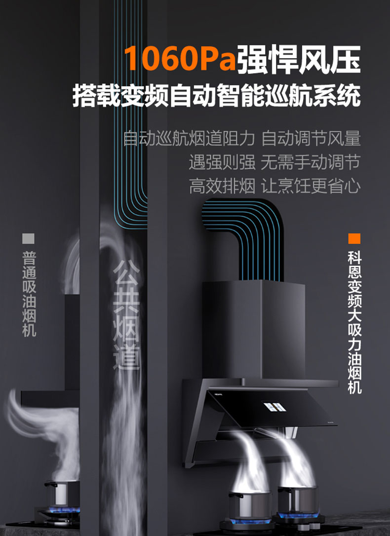 • ‌1060Pa強風壓‌,高峰期烹飪排煙暢行無阻