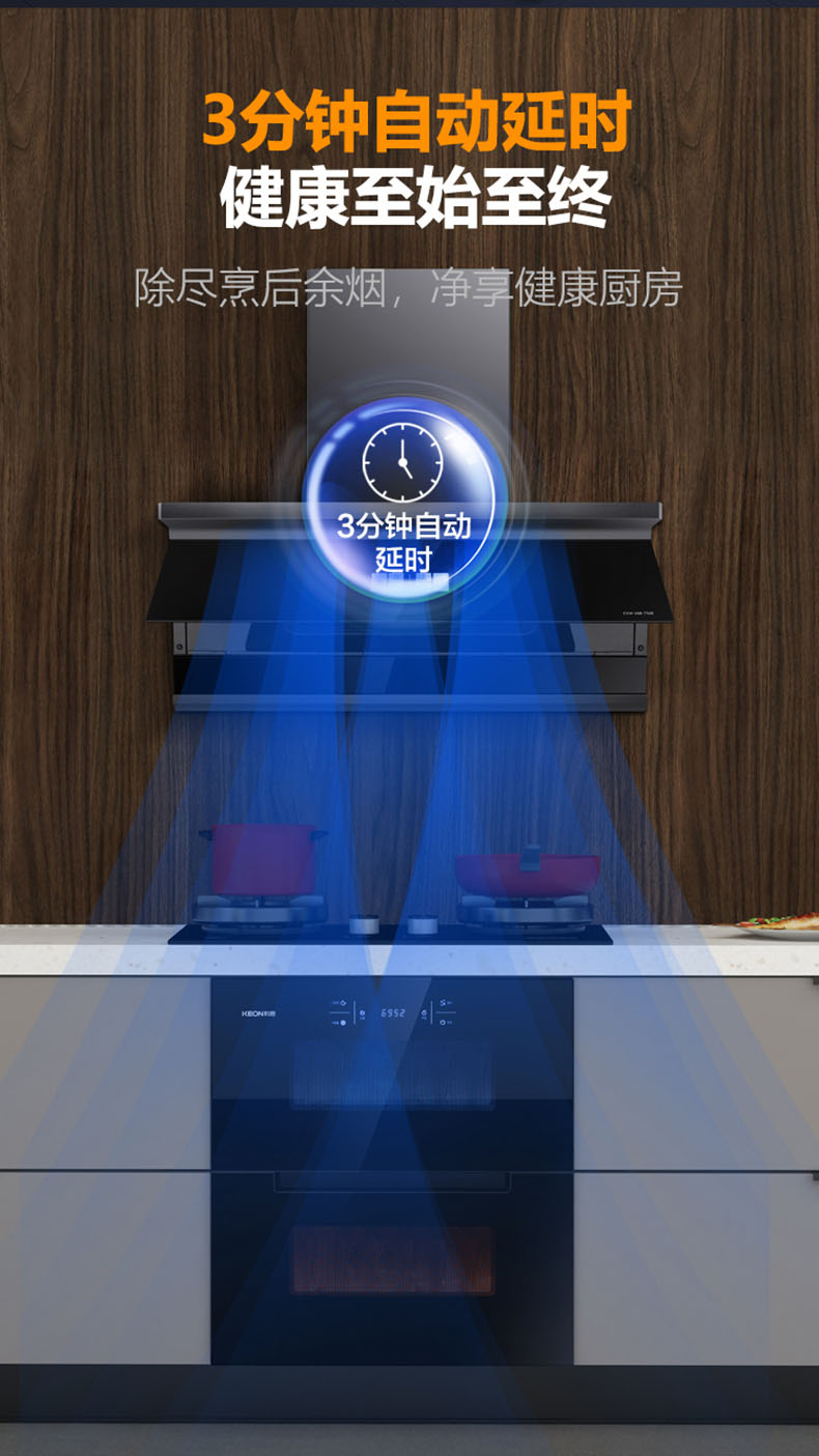• 健康至始至終,3分鐘自動延時,除盡烹后余煙