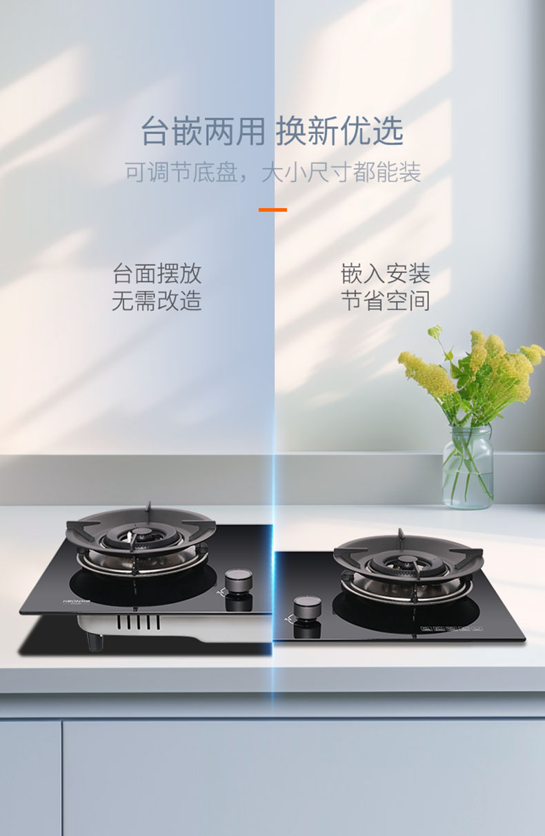 - 自適應(yīng)底盤(pán),換灶免改孔,新老廚房皆適配