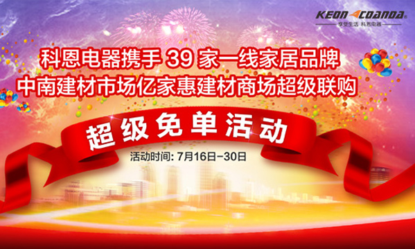 7月16日—30日,為期15天的中南建材市場(chǎng)億家惠建材商場(chǎng)超級(jí)聯(lián)購(gòu)大免單活動(dòng)火熱舉辦中,此次活動(dòng)由浙江科恩電器牽頭,...